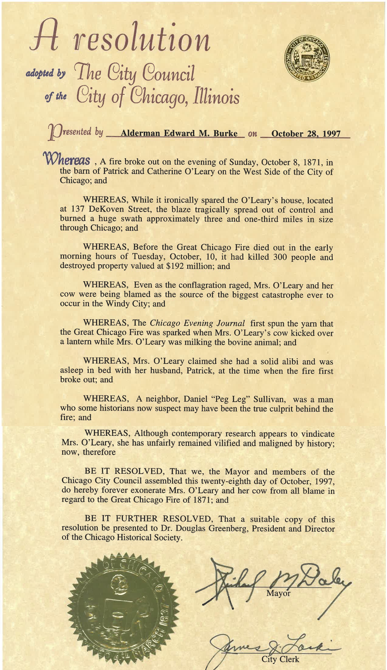 Then, 102 years after she died, the Chicago City Council exonerated her and her cow.