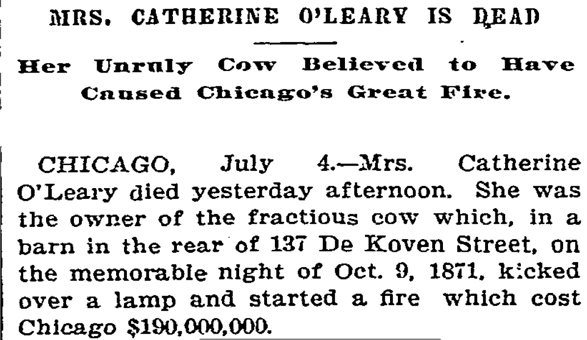 Compassion for Mrs. O’Leary was in short supply in 1871.